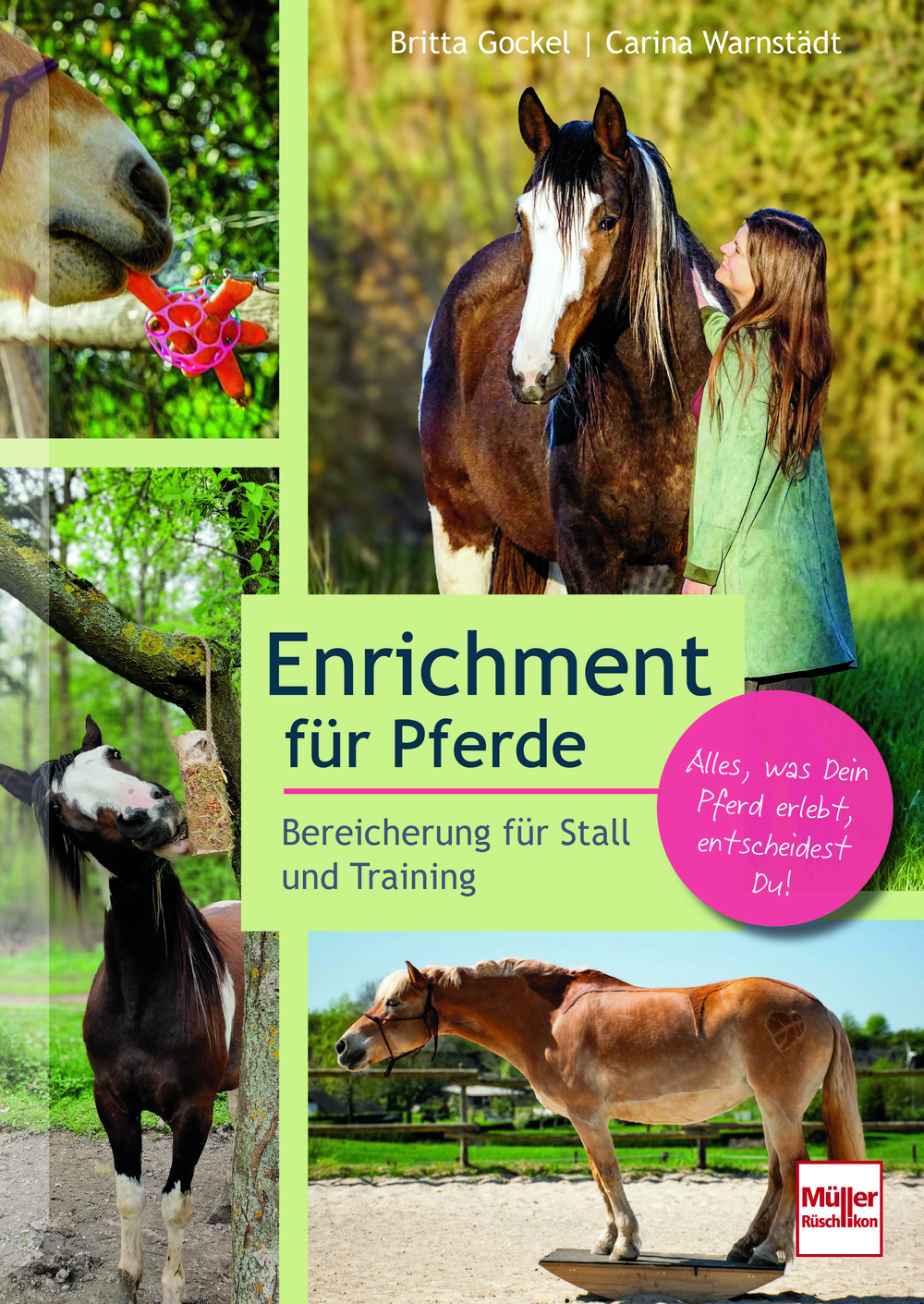 Pferdeglück durch Enrichment: Dieses Buch zeigt, wie durch Training, Haltungsoptimierung und kleine Spielereien das Leben der Pferde bereichert werden kann. All das ist gut für die körperliche Gesundheit der Tiere, das seelische Wohlbefinden sowie für ihre Intelligenz, Neugier und ihren Mut.